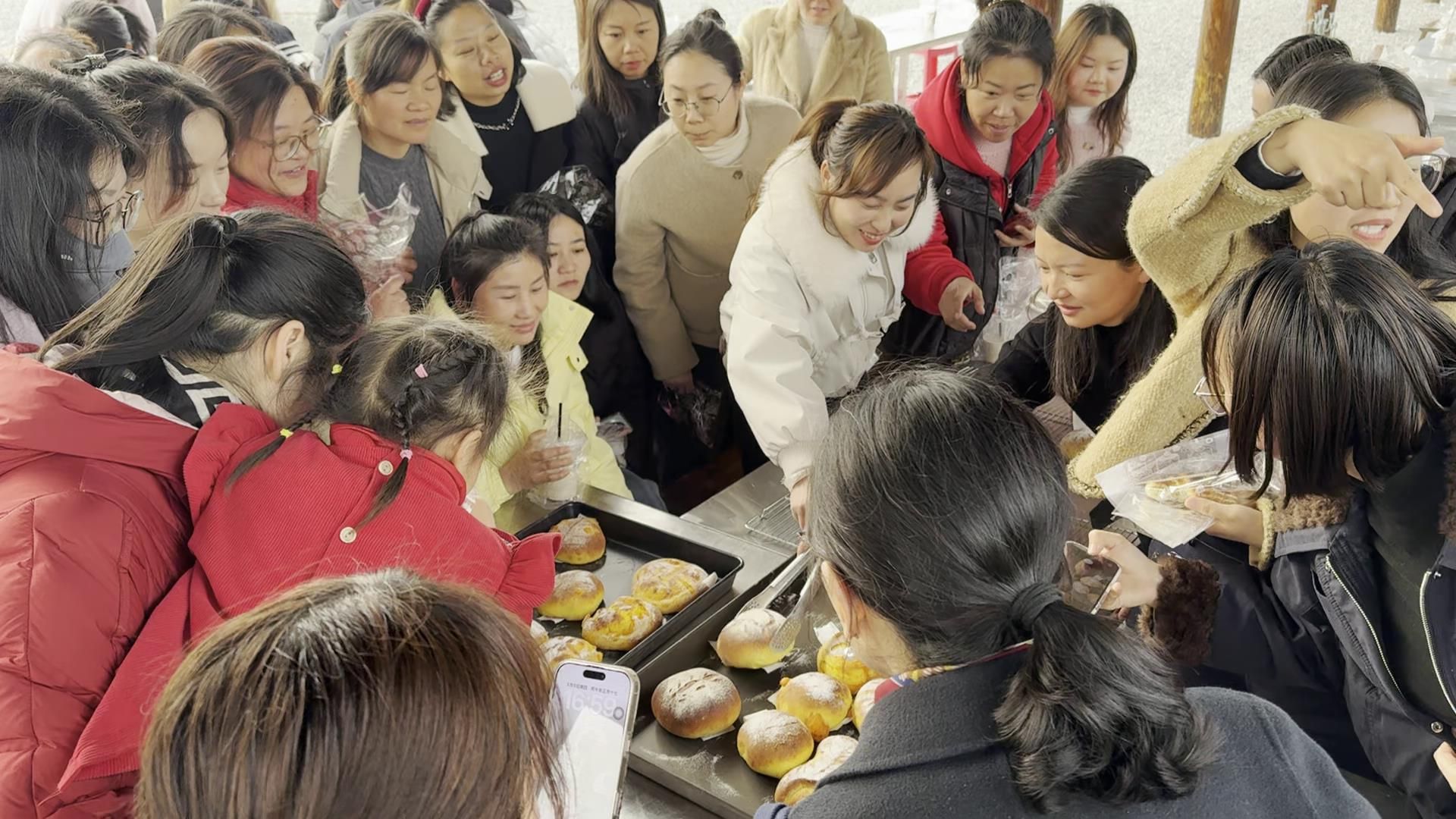 讲座结束后,大家前往东方年华开展窑烤面包手作体验。在专业老师指导下,大家纷纷化身“巧手厨师”,揉面、塑形、烘烤,沉浸式体验手工制作的乐趣,在协作互动中增进了彼此情谊,舒缓了工作压力,尽显新时代女性热爱生活、积极向上的精神风貌。
