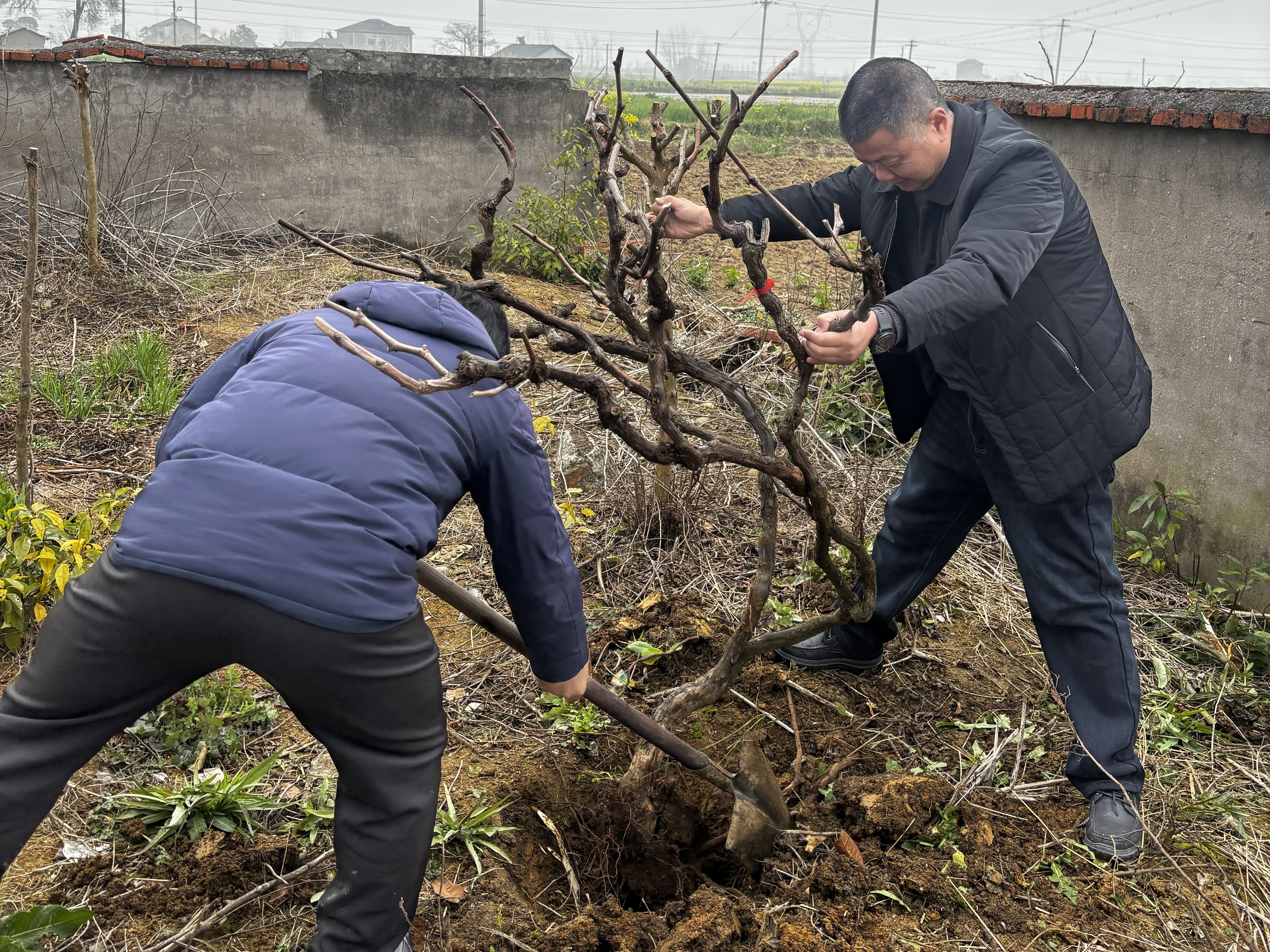 此次栽种的几株葡萄树,虽数量不多,却承载着丰富村集体庭院景致、增添村民日常采摘乐趣的心愿。栽种完成后,大家又迅速着手搭建支架,小心翼翼固定藤蔓,为葡萄树日后攀援生长、枝繁叶茂预留充足空间,用细心与耐心为新苗保驾护航。