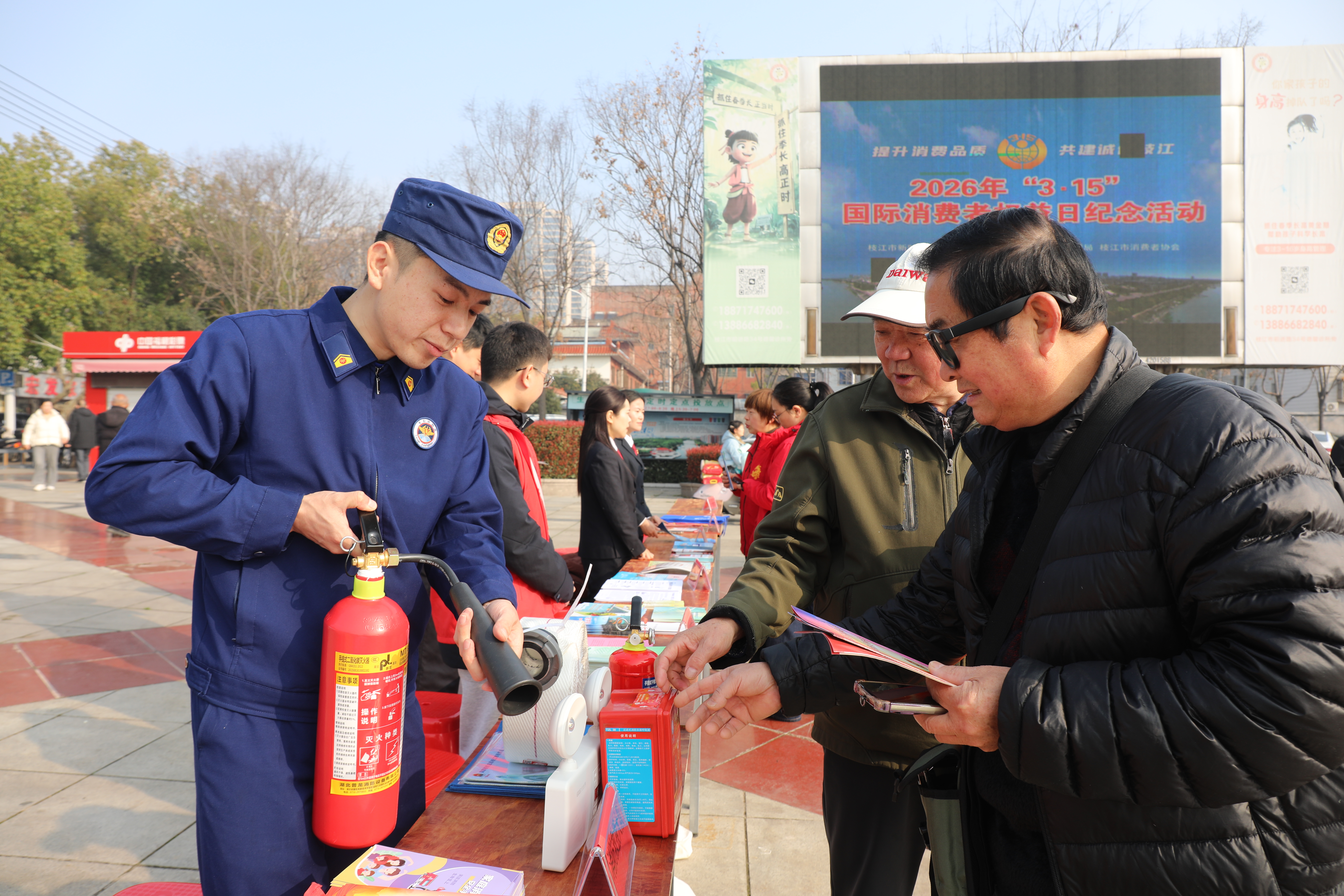 枝江融媒(通讯员 刘婷婷)为切实筑牢消防安全防线,全力守护消费者合法权益,3月10日,枝江市消防救援局积极参与枝江市“3.15”国际消费者权益日纪念活动,在五柳公园西门广场开展消防产品质量宣传活动,将实用专业的消防知识送到群众身边 。
