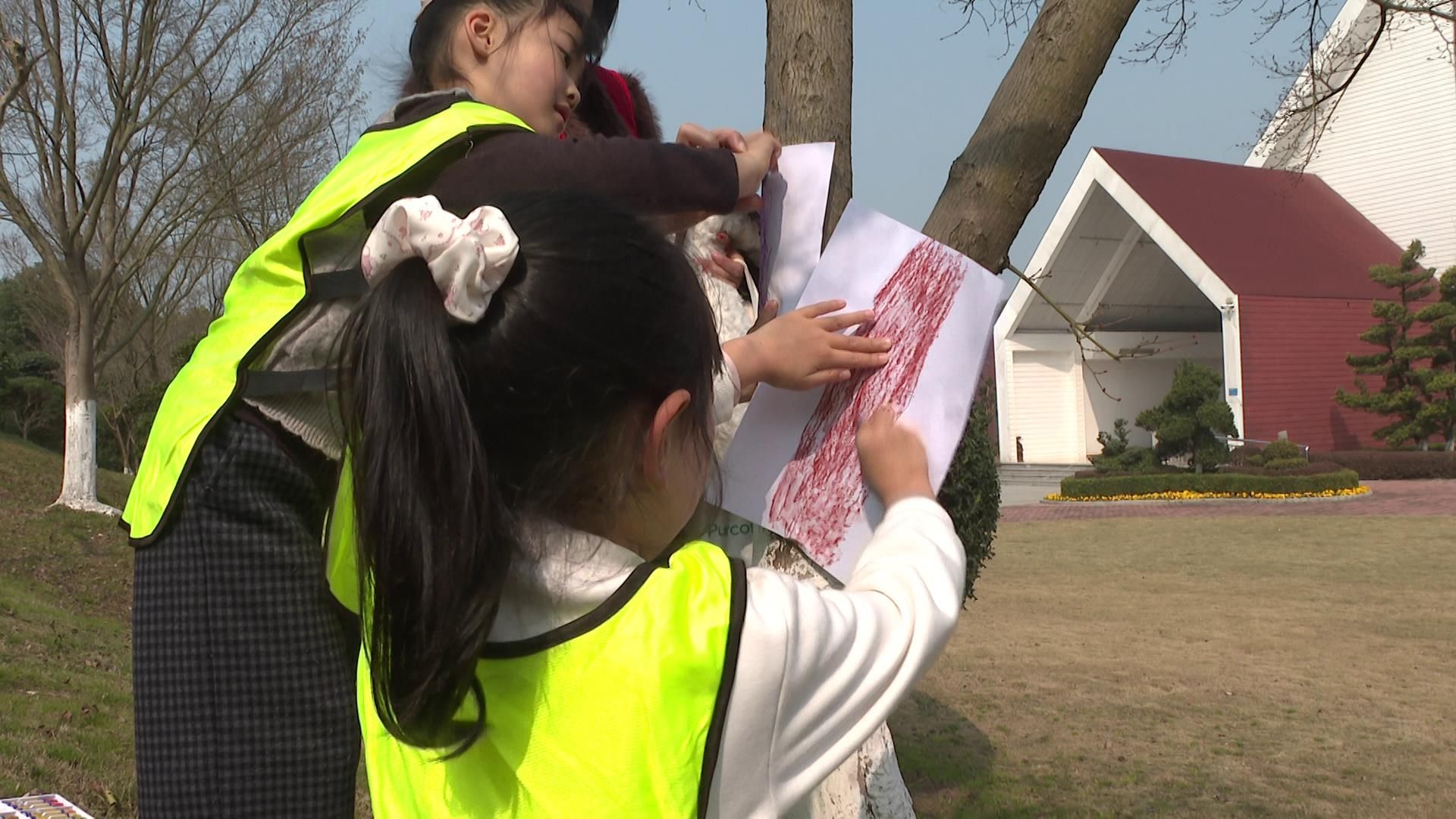种植环节结束后,趣味科普互动随即开启。孩子们手持尺子测量树木直径,在老师指导下学习判断树龄的小知识;又拿起画笔和纸张,认真拓印树干纹理,在趣味互动中直观感受植物的生长奥秘,加深对自然科学的认知。“带孩子来植树、学科普,既是陪伴也是成长。希望孩子从小在心中播下绿色和科学的种子,健康快乐成长。” 家长覃金涛说道。