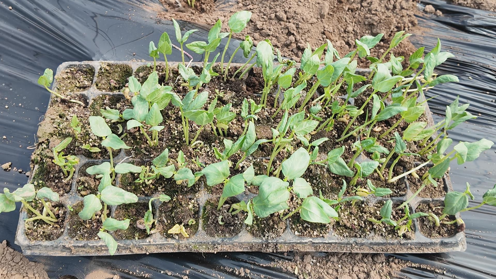 走进农场的设施大棚,一排排整齐翠绿的幼苗映入眼帘,在温暖的阳光下显得格外茁壮。工人们正有条不紊地进行打孔、栽苗、覆土等工序,动作娴熟而迅速。