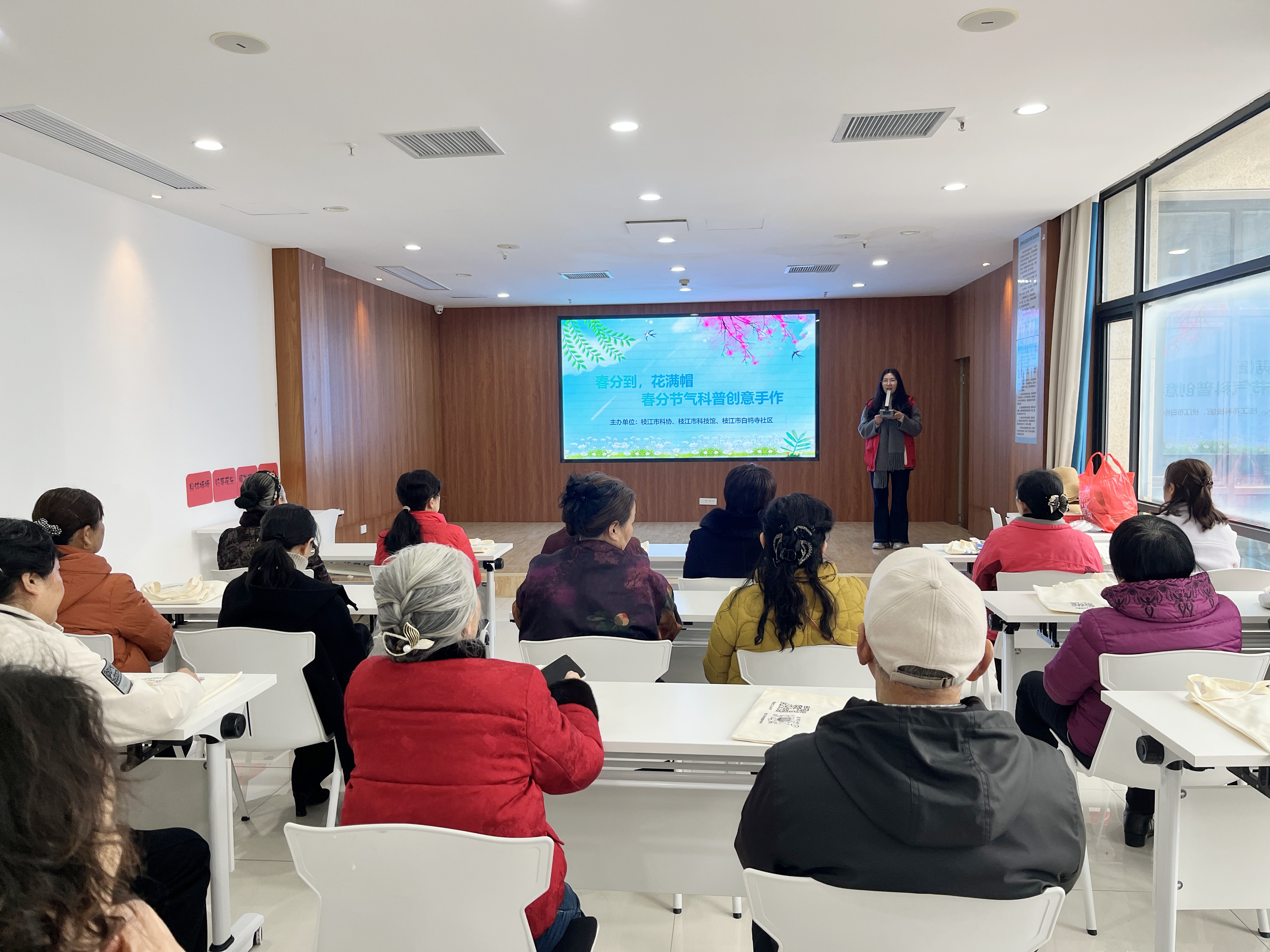 枝江融媒(通讯员 刘君 李小漓)为传承中华优秀传统文化,普及节气科学知识,3月19日下午,由市科协主办,市科技馆、马家店街道白鸭寺社区居委会承办的“春分到,花满帽——春分节气科普创意手作”公益科普活动,在社区活动室温情举办,25名社区居民齐聚一堂,在科普与手作中邂逅春日美好。