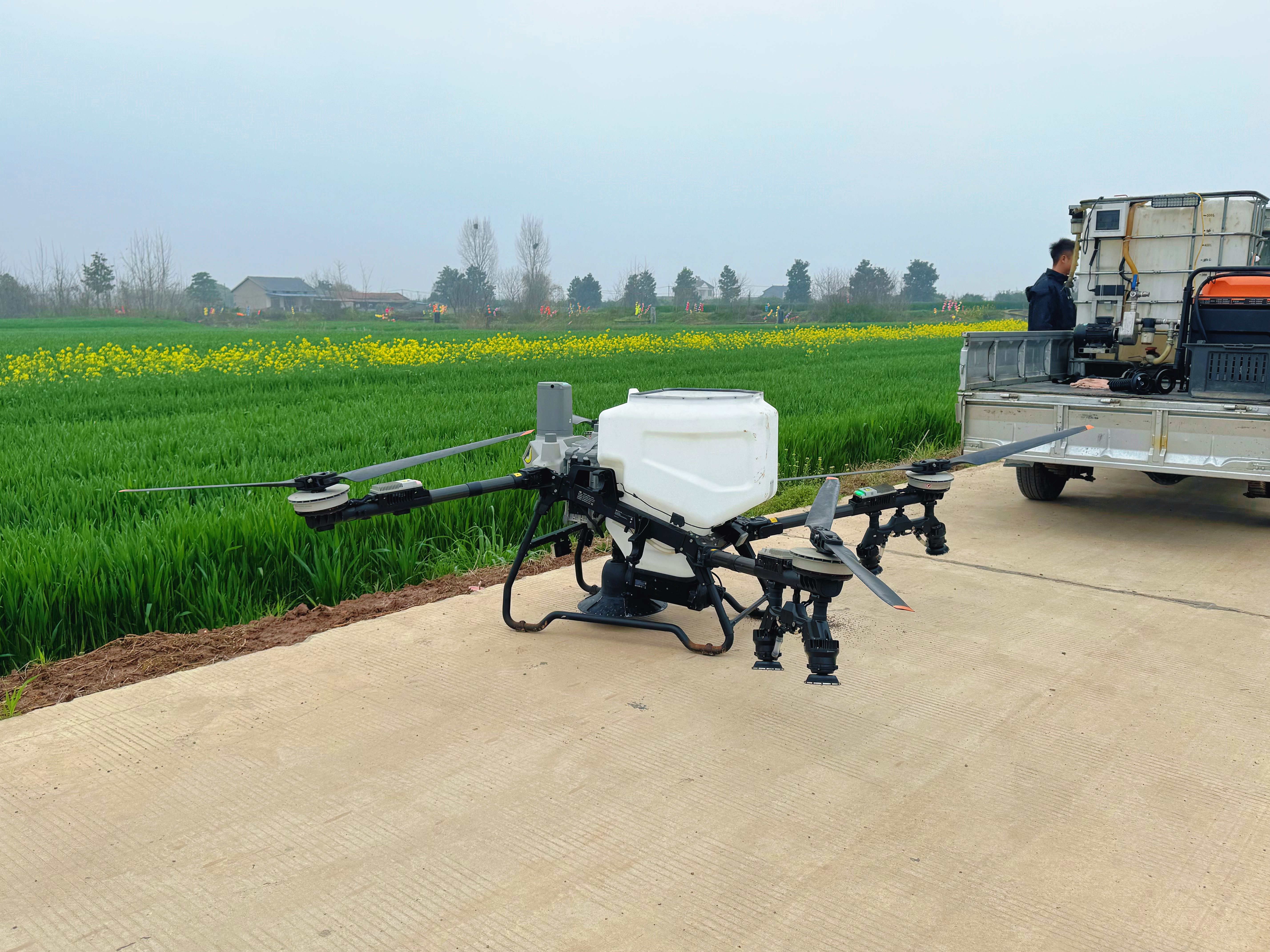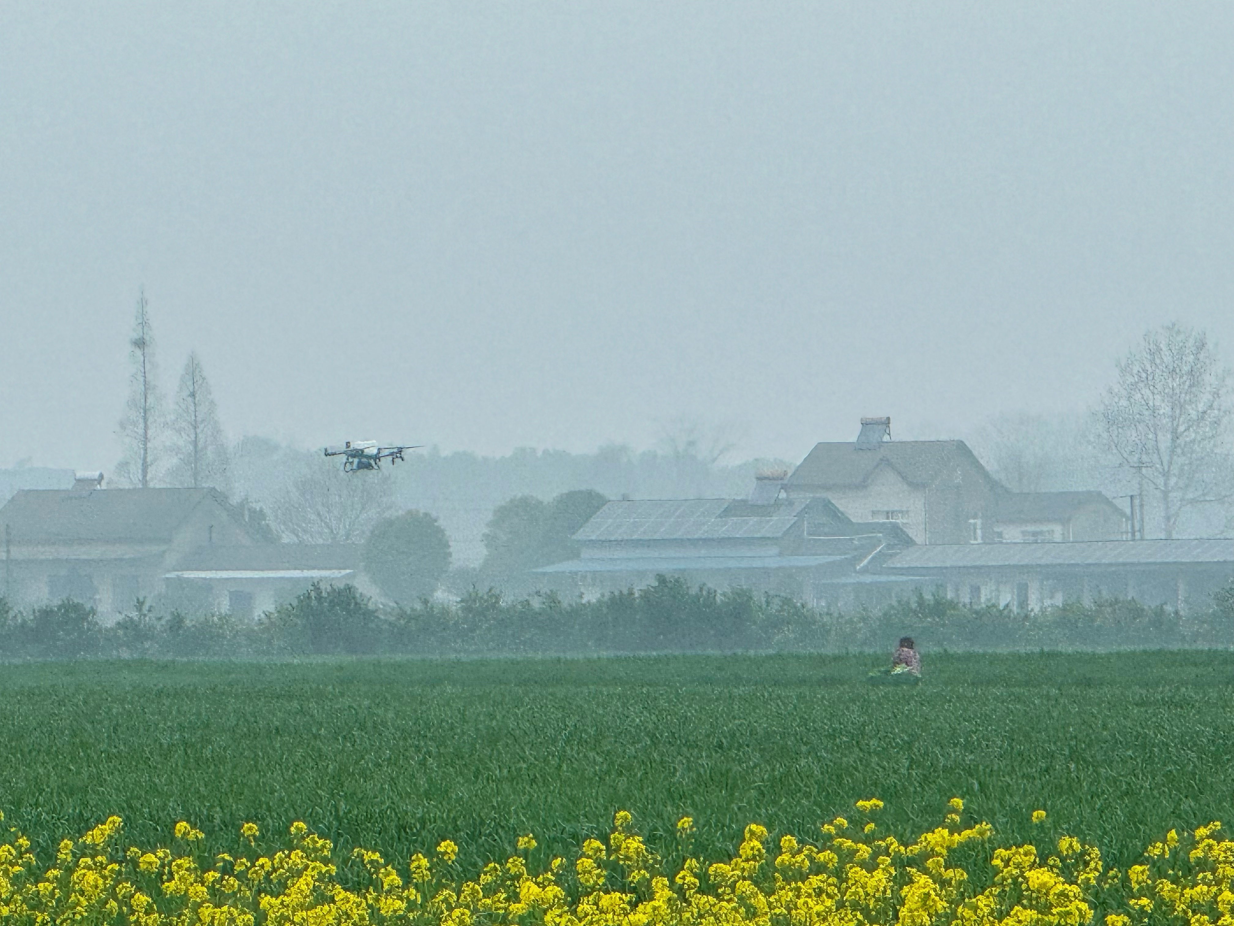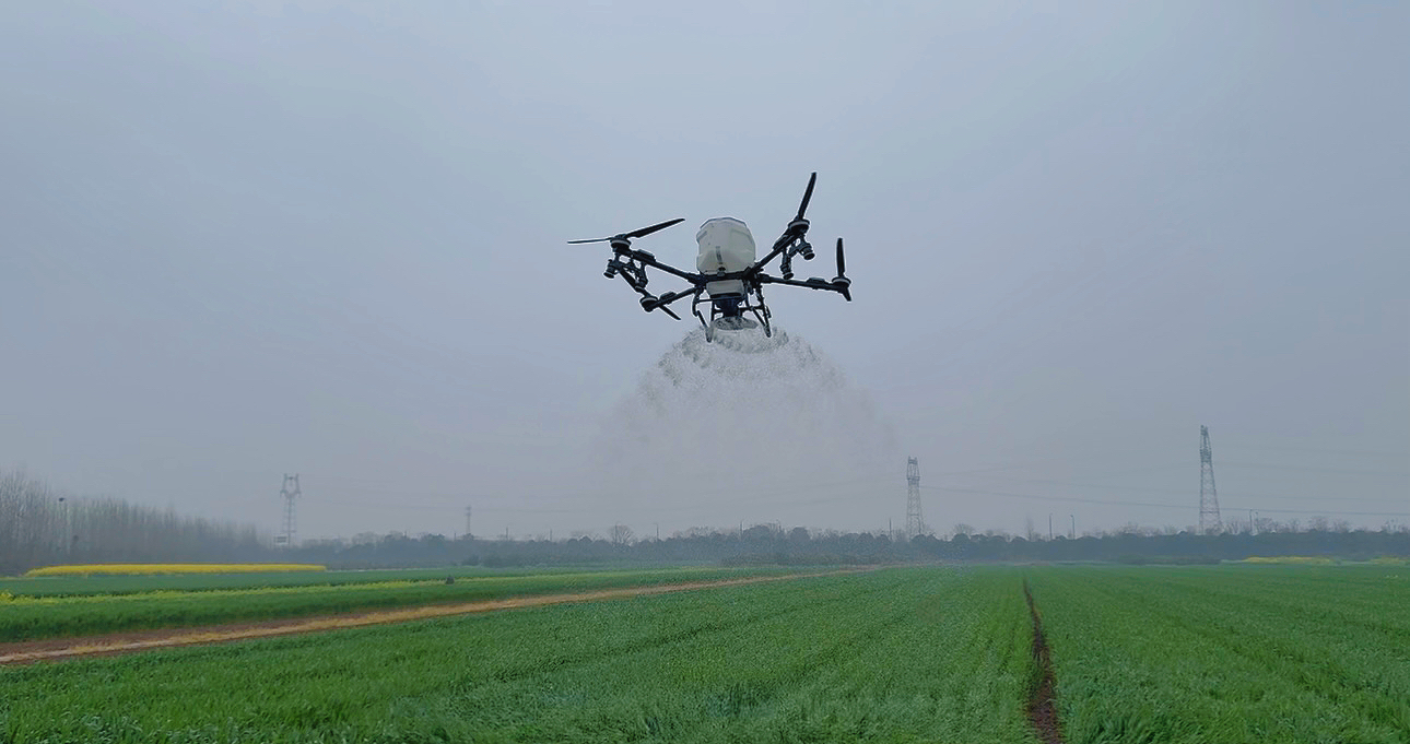 在白家岗村三组的麦田边,枝江市裕凯农机服务专业合作社负责人肖江龙正熟练地操作着遥控器。伴随着嗡鸣声,一架无人机腾空而起,按照预设航线匀速掠过麦田,旋翼转动间,肥料均匀地洒落在麦苗上,高效、精准的作业模式,让传统春管焕新貌。