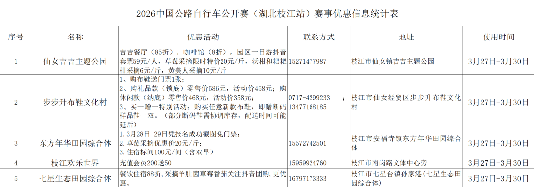 这次,我们给大家挖到了更大的宝藏——枝江各大景区已经准备好用最美的春光迎接大家!比赛结束后,别忘了带上家人朋友,跟着我们这份「骑迹枝江·景区优惠指南」,去金湖湿地吹吹风,去同心花海拍拍照,去东方年华撒撒野~🌸🌿