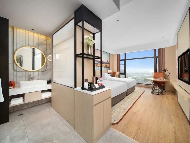 酒店周边生活配套齐全,包含餐饮、娱乐等,出行便捷。客房类型多样,有豪华城景房、行政商务房、行政澄悦智能套房、畅爽五人电竞高配房等,配备智能系统、高清智能液晶电视、中央空调、新风系统、独立卫浴、智能马桶、百兆专线光纤和独享WIFl。