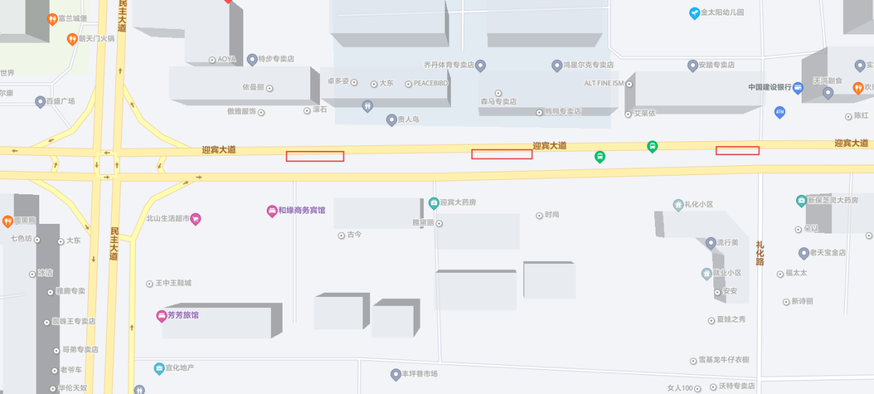 1.占道区域:迎宾大道(礼化路至民主大道)
