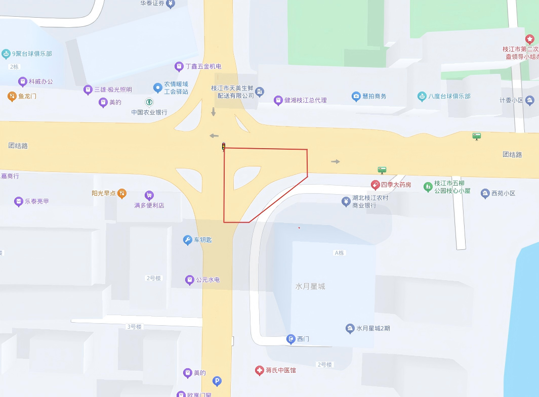 1.占道区域:公园路与团结路路口(团结路南边半幅)