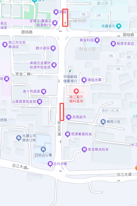 1.占道区域:团结路与民主大道交叉口东南侧、民主大道爱尔医院西北侧。