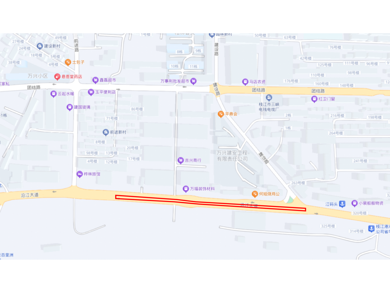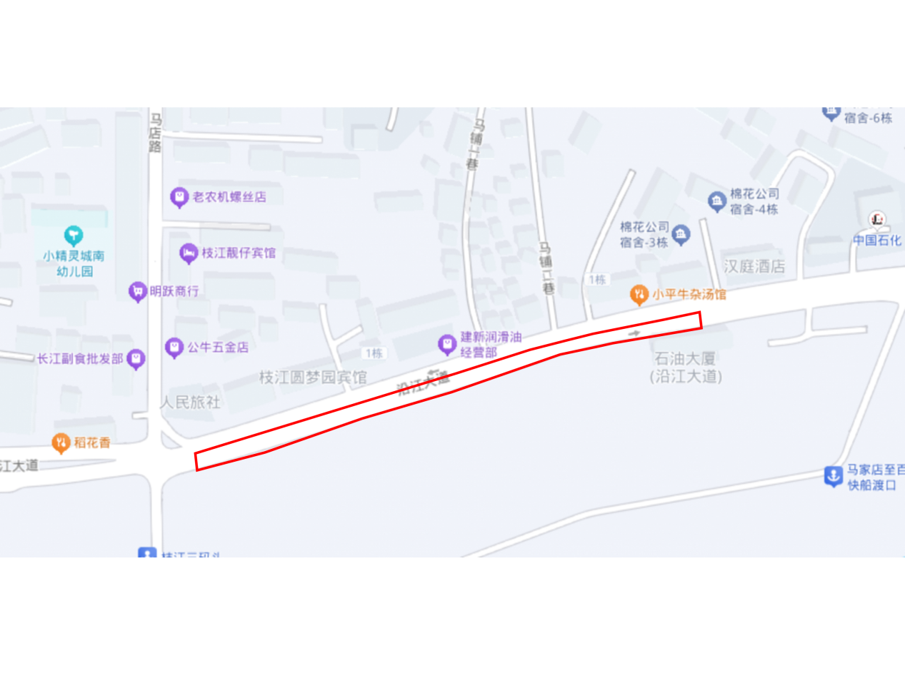 1.占道区域:沿江大道(城东泵站至建设路)