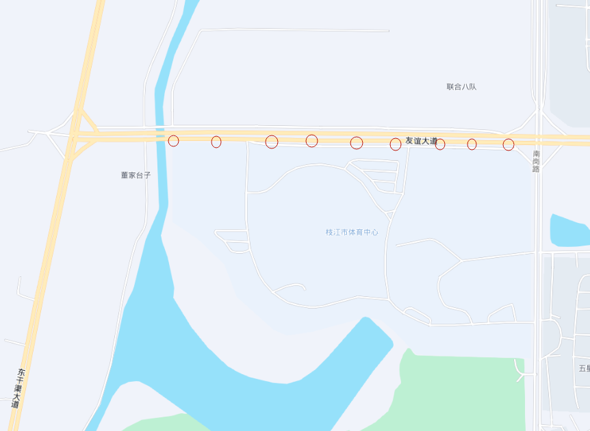 1.占道区域:东干渠河道东南侧-南岗路与友谊大道交叉口。
