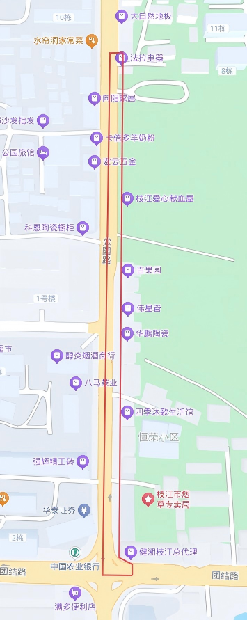 1.占道区域:公园路与团结路路口(团结路北边半幅)至迎宾大道