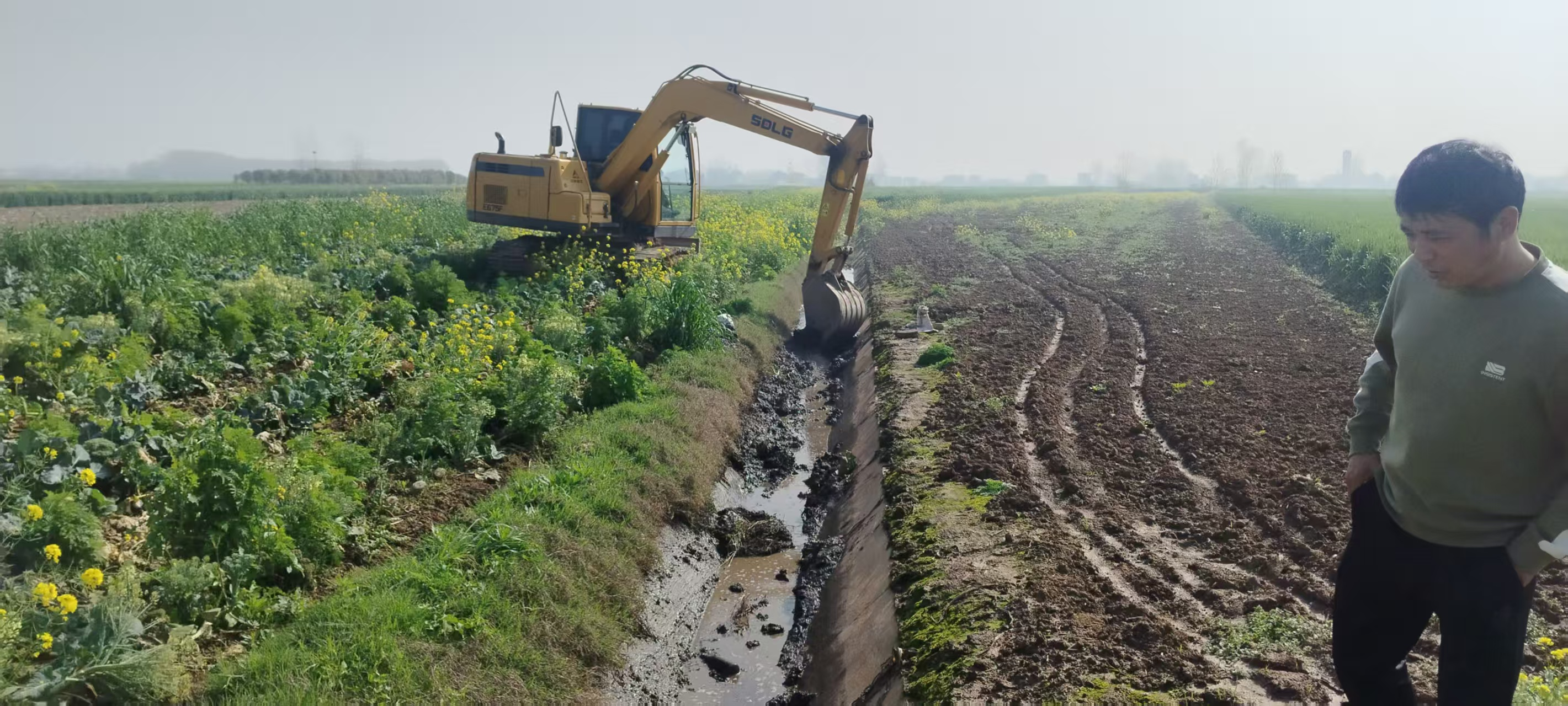 针对村内部分沟渠存在淤泥淤积、杂草堵塞、通水不畅的问题,村“两委”统筹调度设备与人员,对全村主次农田沟渠进行集中清理。作业现场,挖机高效作业,清淤泥、除杂草、通堵点,工作人员同步做好沟渠沿线整理,彻底打通灌溉“毛细血管”。