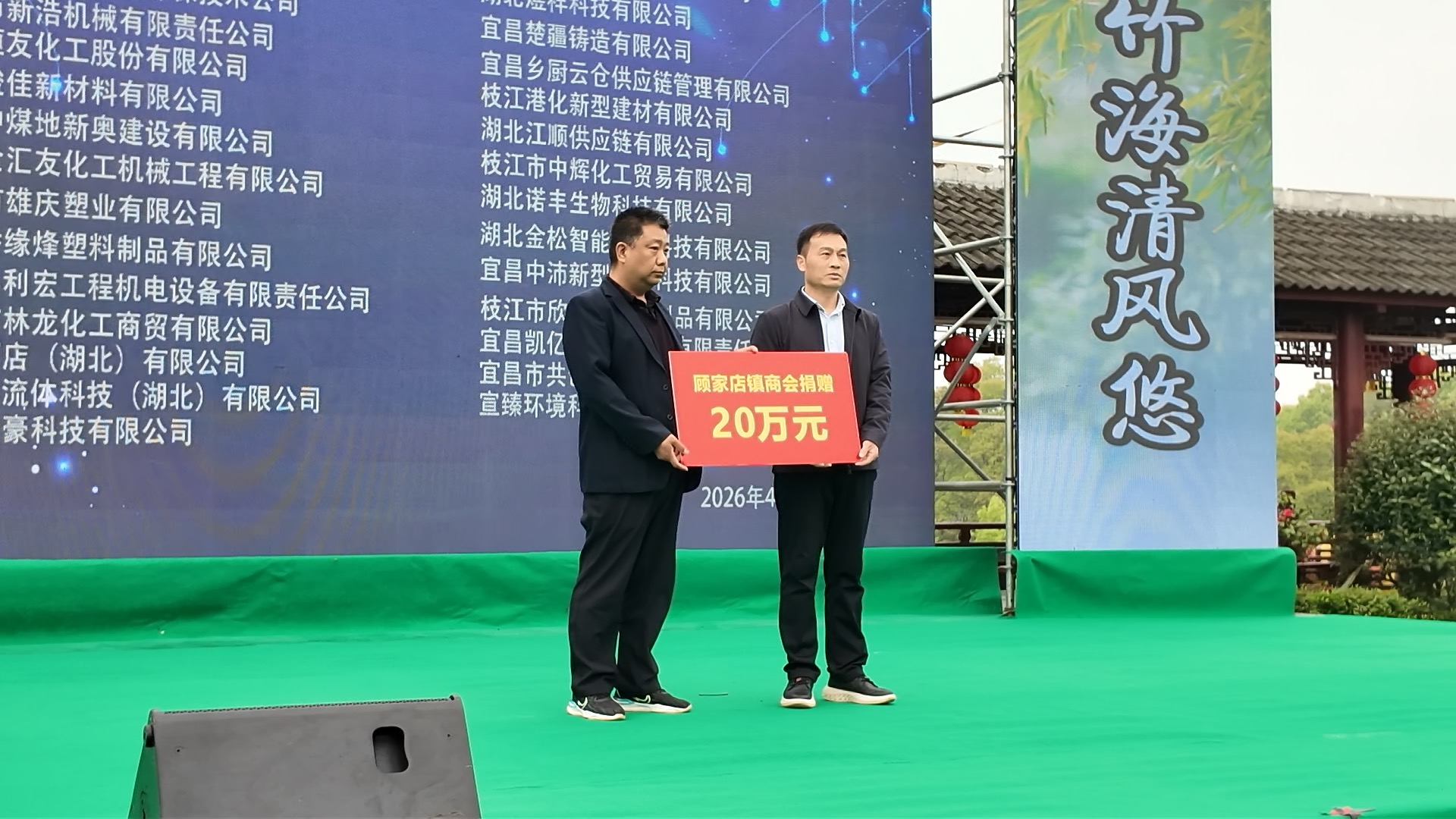 捐赠仪式结束后,枝江市歌舞剧团献上精彩文艺表演,歌舞、曲艺等节目轮番上演,演员们精神饱满、演绎精湛,赢得了现场观众阵阵掌声,营造出浓厚文化氛围。