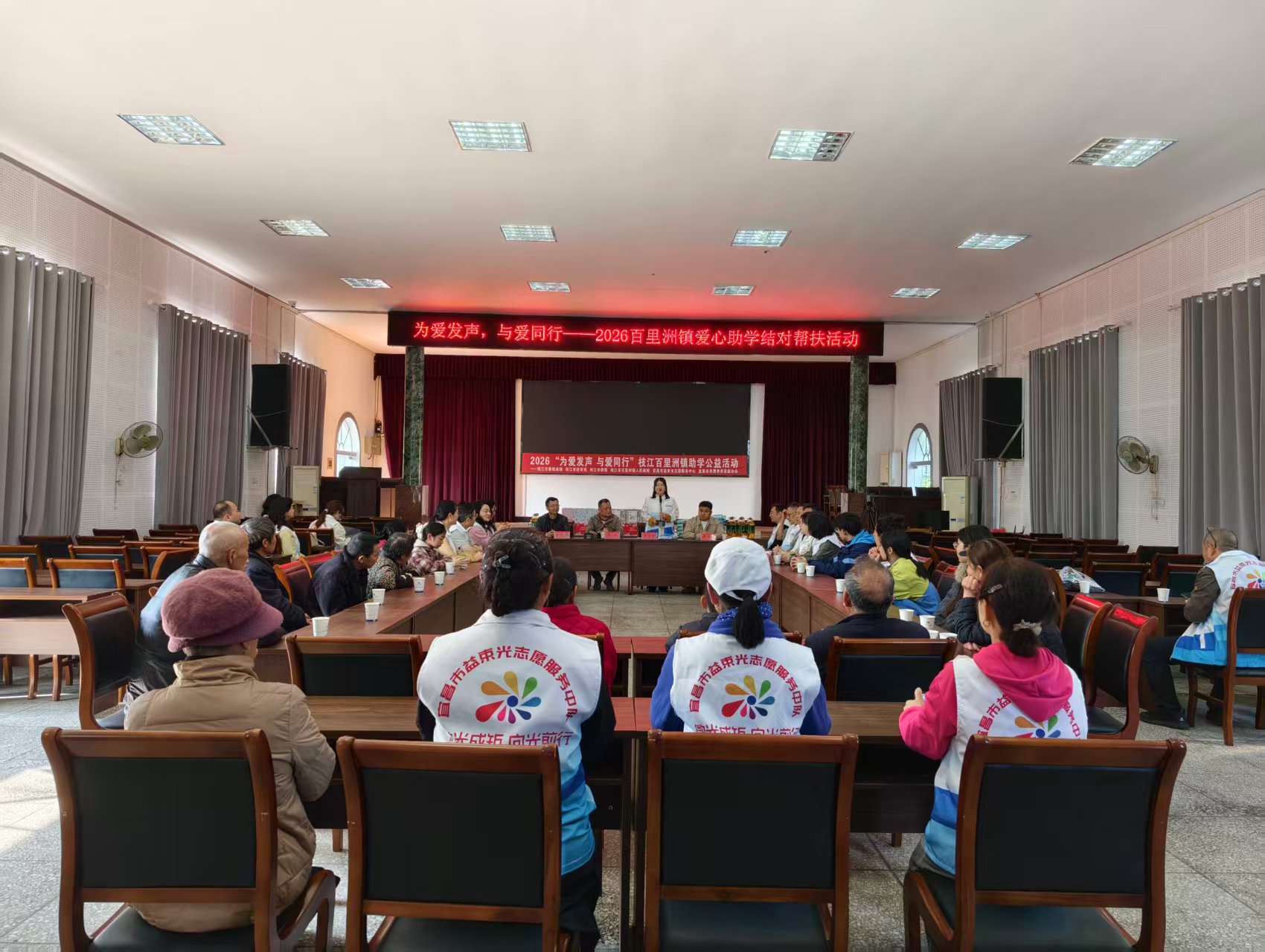 枝江融媒(通讯员 彭祥旖)春风送暖,爱心相传。4月12日,“为爱发声,与爱同行”百里洲镇助学公益活动顺利举行。据悉,该公益项目已连续开展七年,由枝江市委统战部、枝江市教育局、枝江市侨联、百里洲镇人民政府联合宜昌市益束光志愿服务中心、宜昌市关爱单亲家庭协会共同举办,以七年如一日的坚守,为当地困境儿童、留守儿童撑起一片爱的天空。