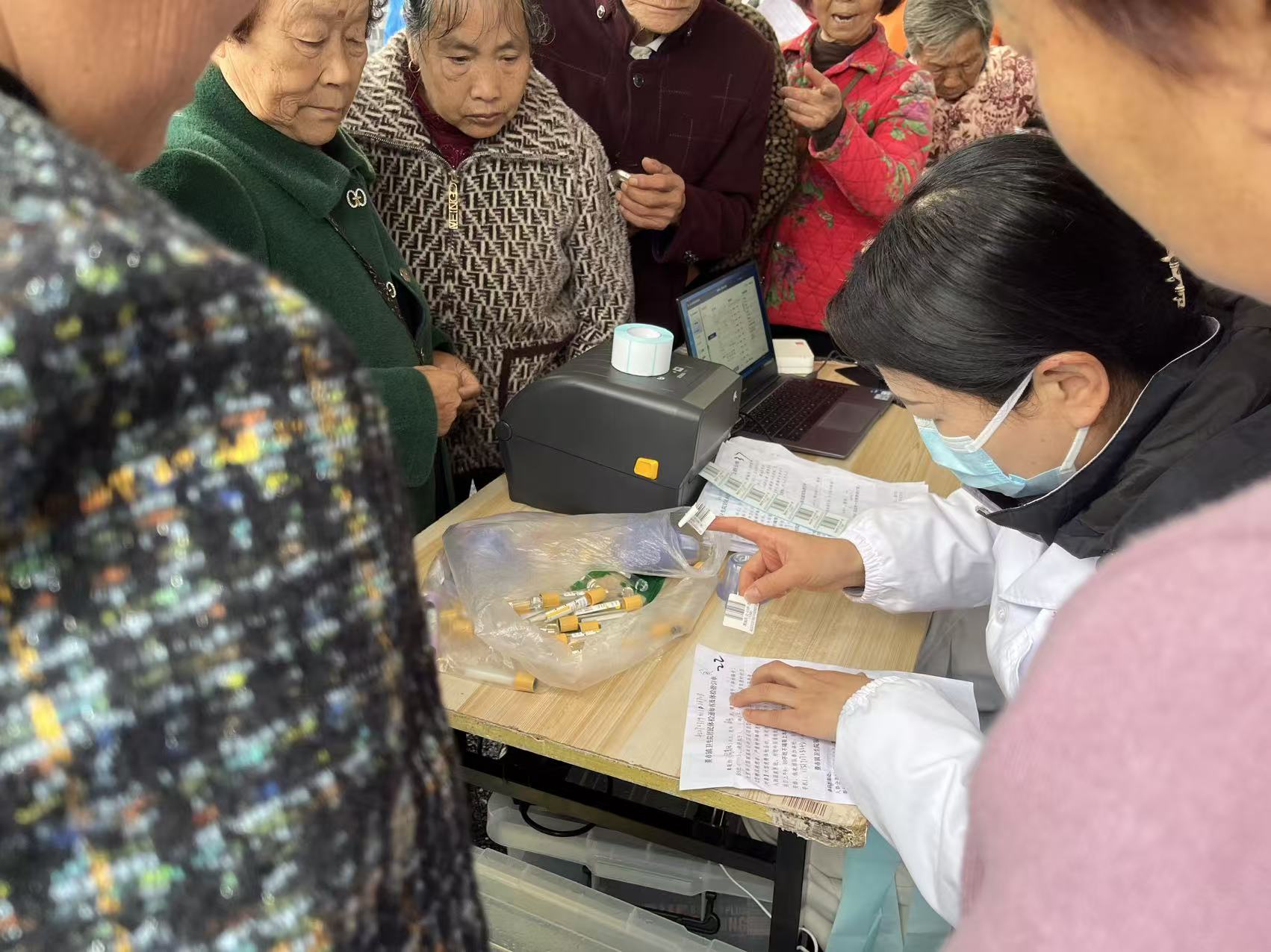 本次体检对象精准覆盖四类重点群体,分别为年满65周岁及以上老年人,已建档在管的高血压、糖尿病、慢阻肺患者,脱贫户及监测户,还有计生特扶人员。体检项目丰富全面,涵盖血常规、肝功能、肾功能检测、尿常规、血压测量、B超、心电图、老年人中医体质辨识及身高体重测量等多项内容,全方位为群众排查健康隐患。为保障活动有序推进,新周场村“两委”提前开展宣传通知工作,明确体检相关注意事项,统筹协调现场秩序,确保符合条件的群众“应检尽检、不漏一人”。