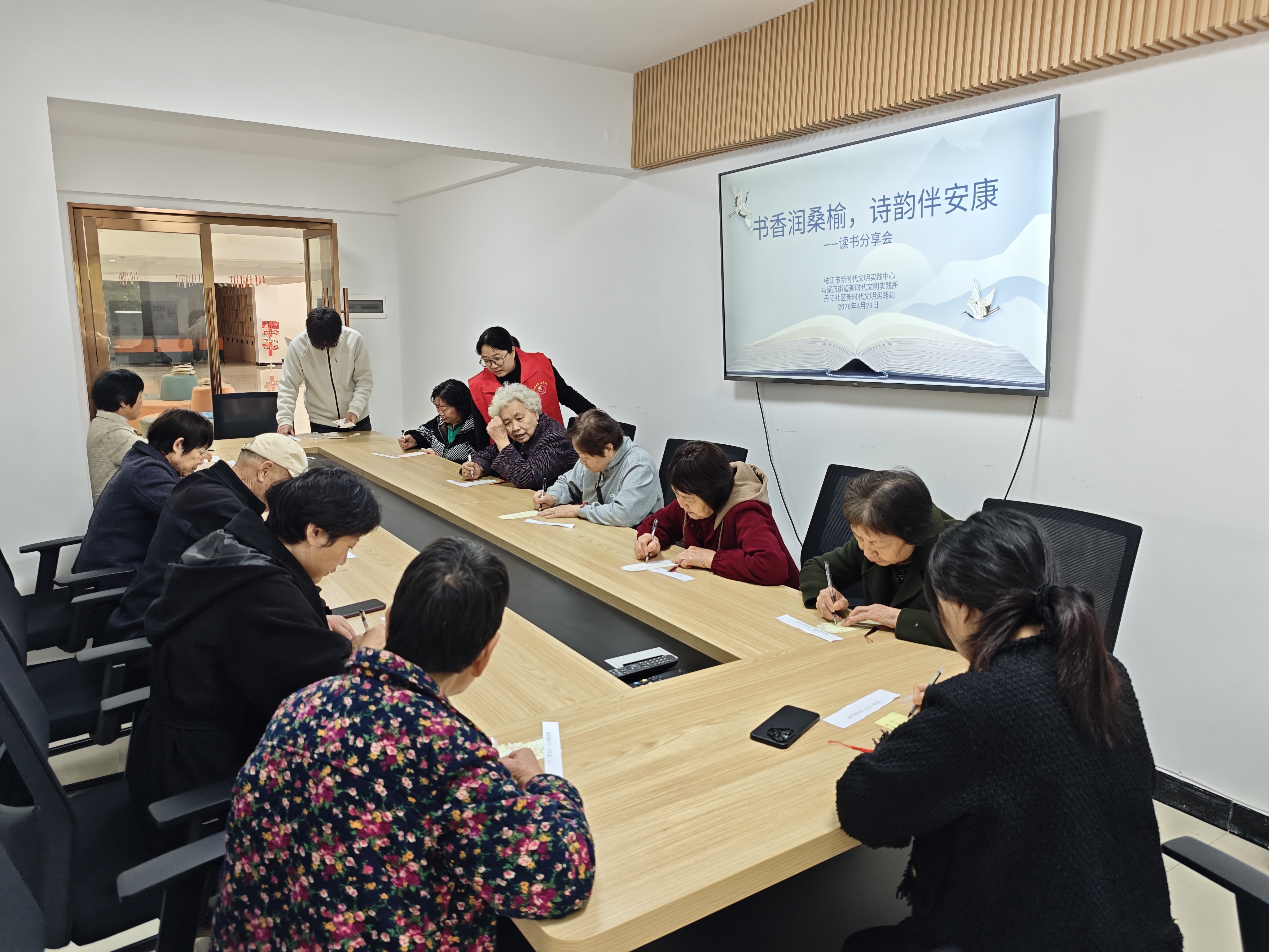 此次读书分享会,是丹阳社区“和事佬”志愿服务队传递温暖、践行敬老爱老责任的具体体现,既丰富了老人们的精神文化生活,拉近了邻里情谊,也让老人们在书香与创作中收获了快乐与归属感。接下来,志愿服务队将持续关注老年群体需求,推出更多有温度、接地气的活动,让敬老爱老之风浸润社区,助力构建书香四溢、邻里和睦的幸福家园。
