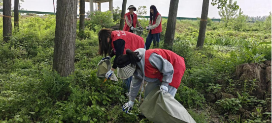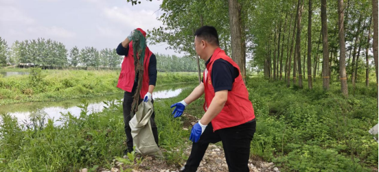 藏在树丛深处的塑料瓶、被杂草掩盖的包装袋、遗落的渔具,都被一一清理、分类收纳。汗水浸湿了衣背,却挡不住大家守护家园的热情。红马甲的身影穿梭在翠绿的草木间,成为玛瑙河岸边最动人的风景。