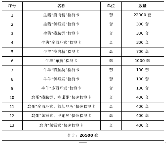 5.采购内容:采购13类快筛检测卡,合计26500套