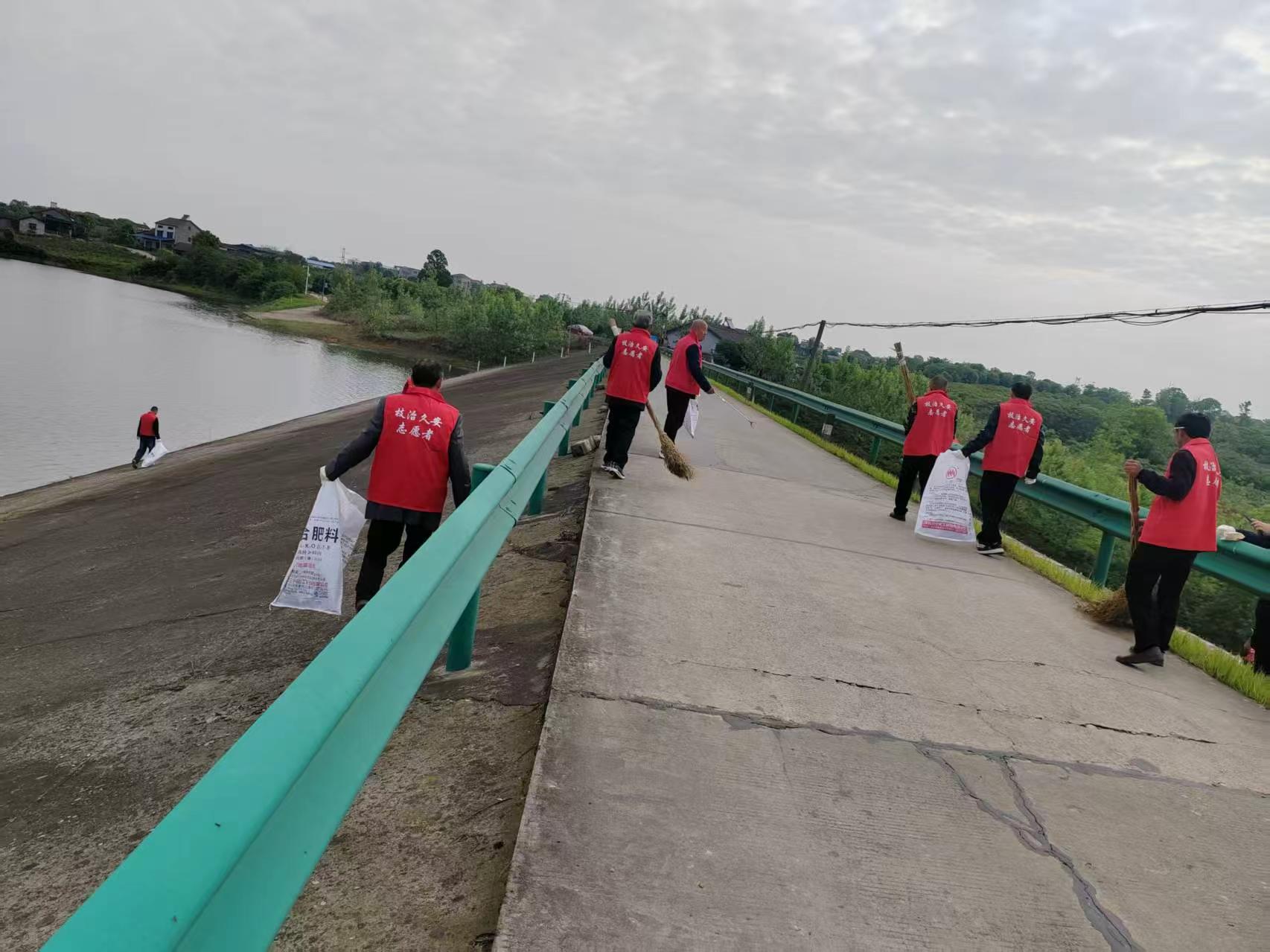 活动现场,党员志愿者们身着志愿服装,手持垃圾夹、垃圾袋等工具,迅速明确分工、有序行动,围绕蒋家冲水库沿岸及周边区域,重点捡拾塑料袋、塑料瓶、废弃杂物等生活垃圾,仔细清理水库岸边草丛、石缝、水边等卫生死角。