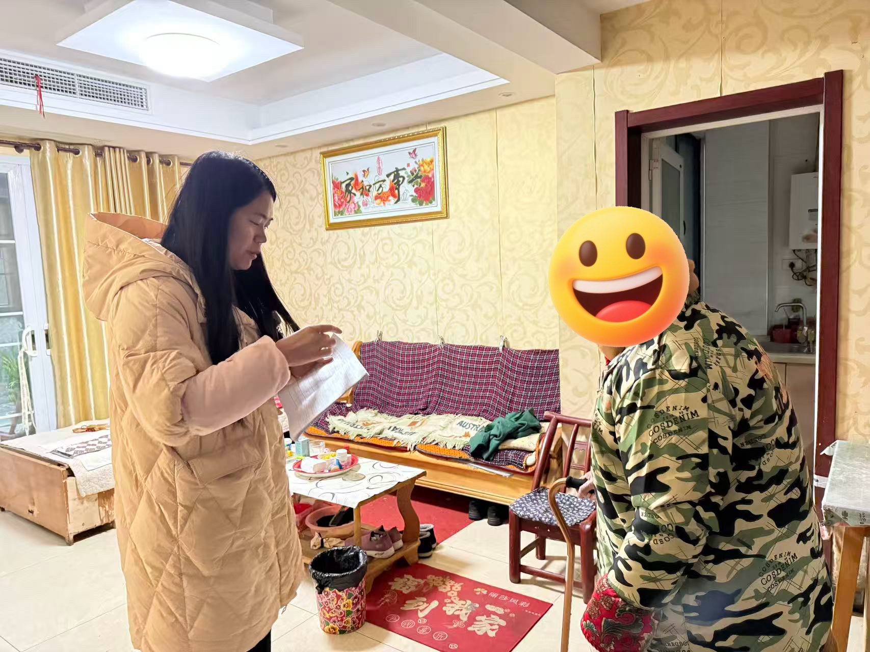 杨奶奶住院治疗后,其年逾九旬的老伴独自在家,时刻牵动着甘鑫林的心。次日,她专程上门走访探望,发现老人精神萎靡,自述出现头痛、发热症状。甘鑫林立即将情况详细反馈给家属,在得知老人需服用颈椎治疗常备药后,细心为老人找出药品、核对服用剂量,贴心倒好温水,全程陪护老人服药,直至老人神色逐渐安稳、身体状况趋于平稳。她还为老人留下便民联系卡,反复叮嘱日常注意事项,后续坚持每日上门回访,直至老人身体完全恢复。
