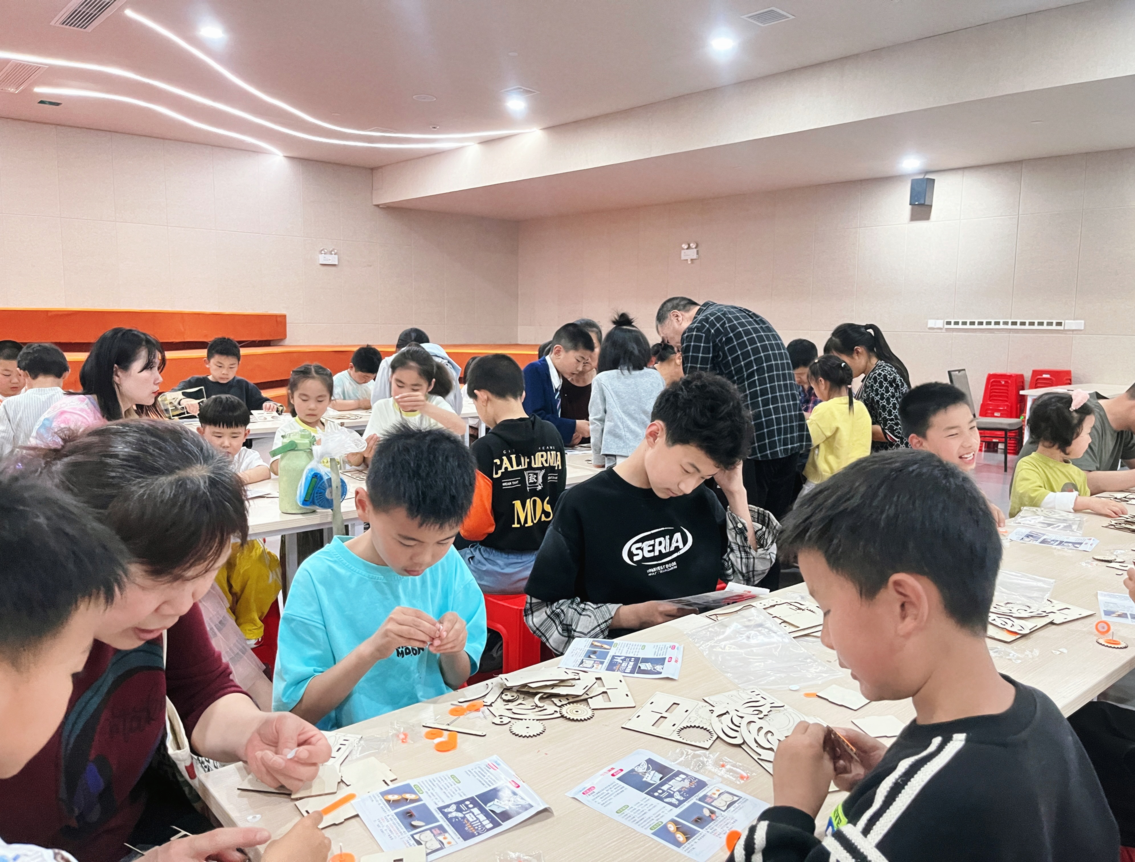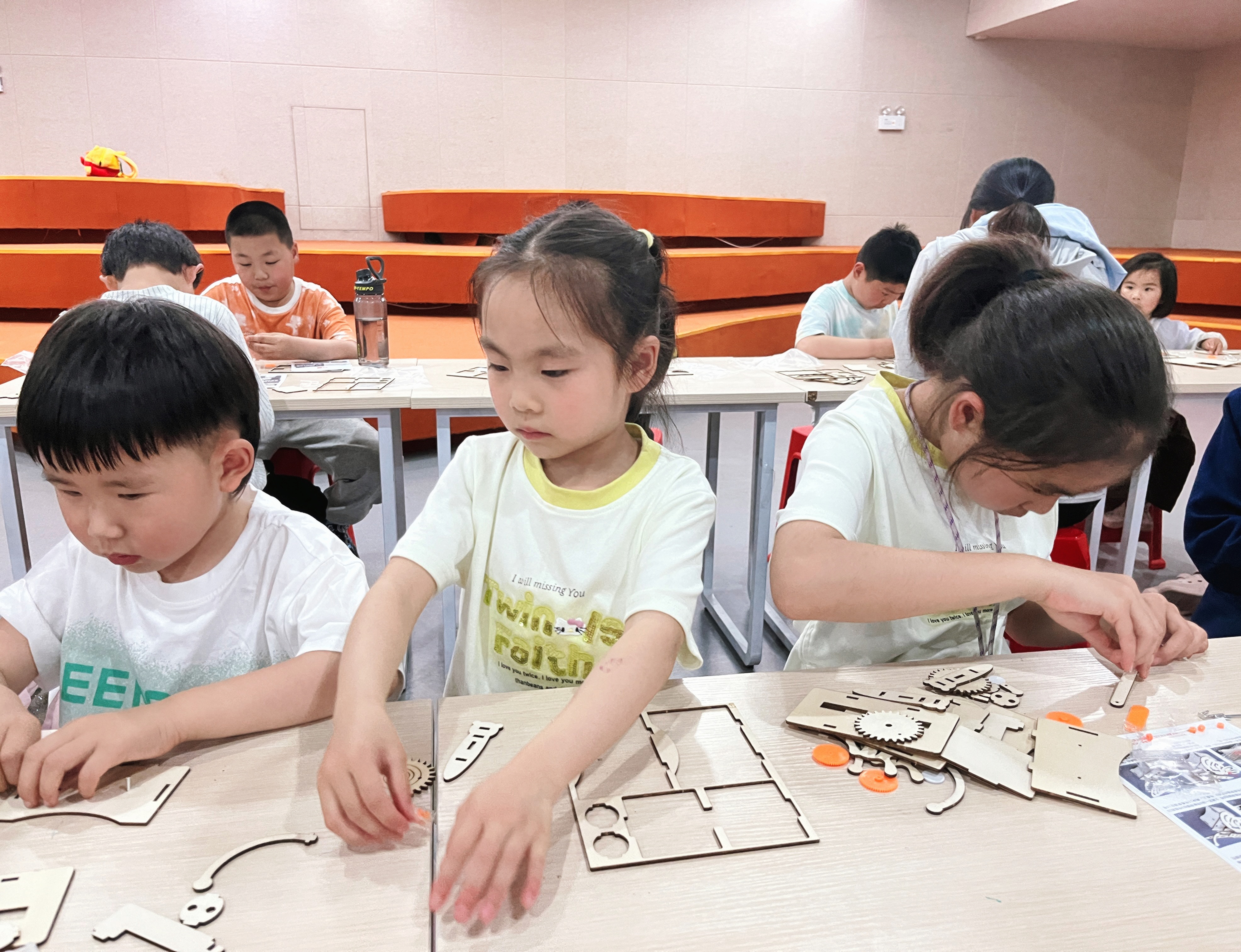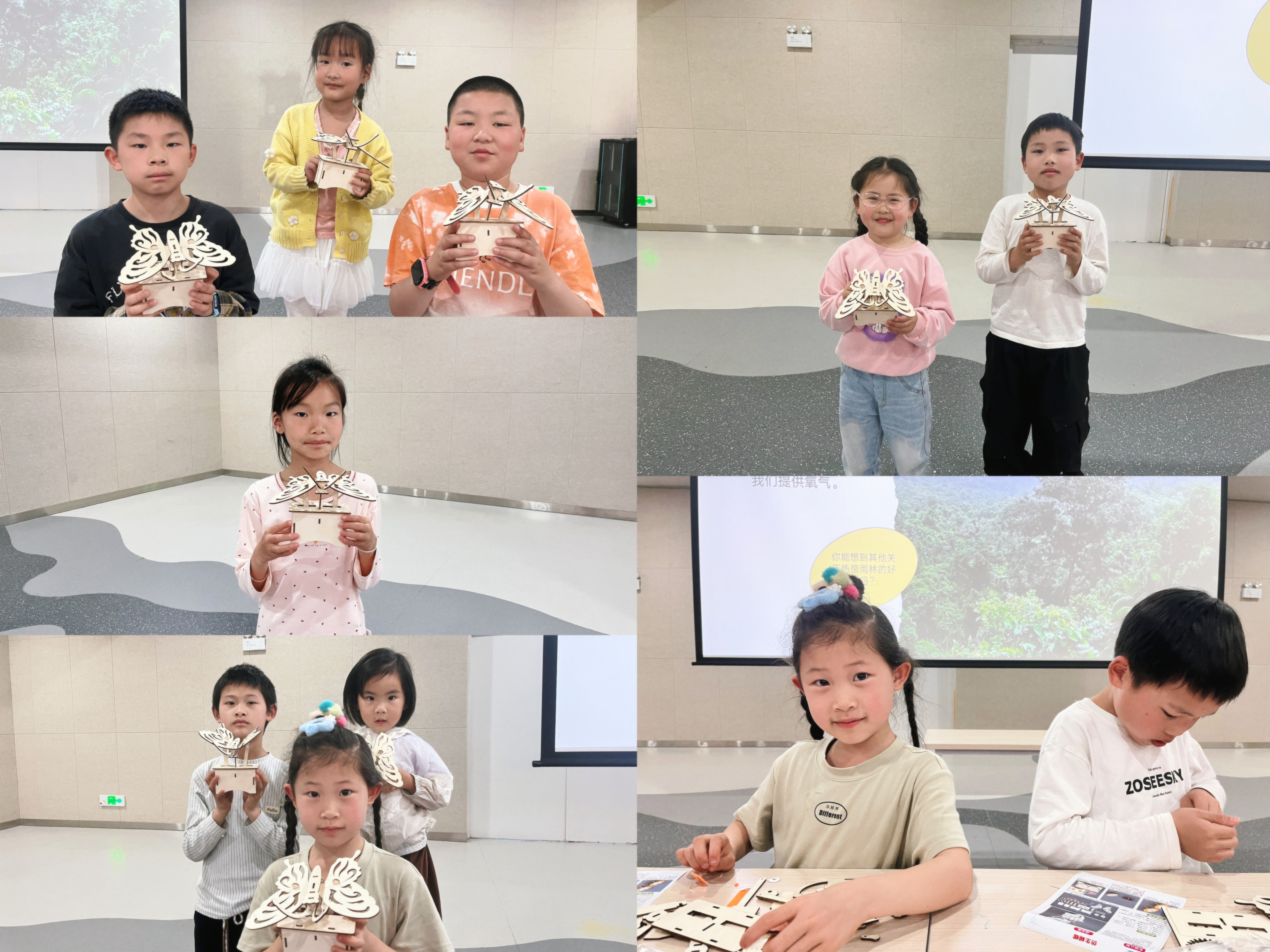 互动探索环节,孩子们化身“小小探险家”,开启了“机械蝴蝶”手工拼装。大家专注操作、互相探讨,一步步完成零件拼接与结构调试。当镂空的蝴蝶翅膀随着齿轮传动灵动扇动时,现场响起阵阵惊叹,孩子们在亲手实践中,既加深了对雨林生态的认知,也解锁了仿生学与力学的奇妙奥秘,把课本里的知识变成了看得见的成果。