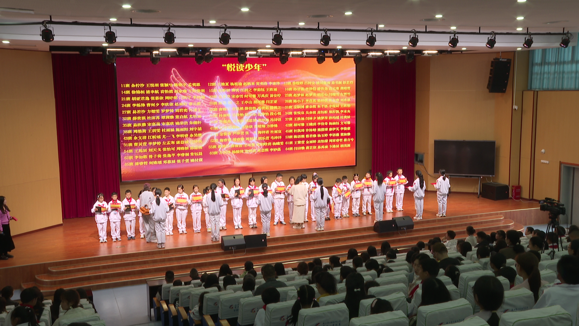 活动在学校礼堂正式拉开帷幕,现场首先举行了“悦读少年”颁奖仪式。学校为一批热爱阅读、表现优异的学生颁发了荣誉证书,以榜样力量引领全体学生亲近书本、爱上阅读,进一步厚植校园阅读文化氛围,激发学生的阅读热情。