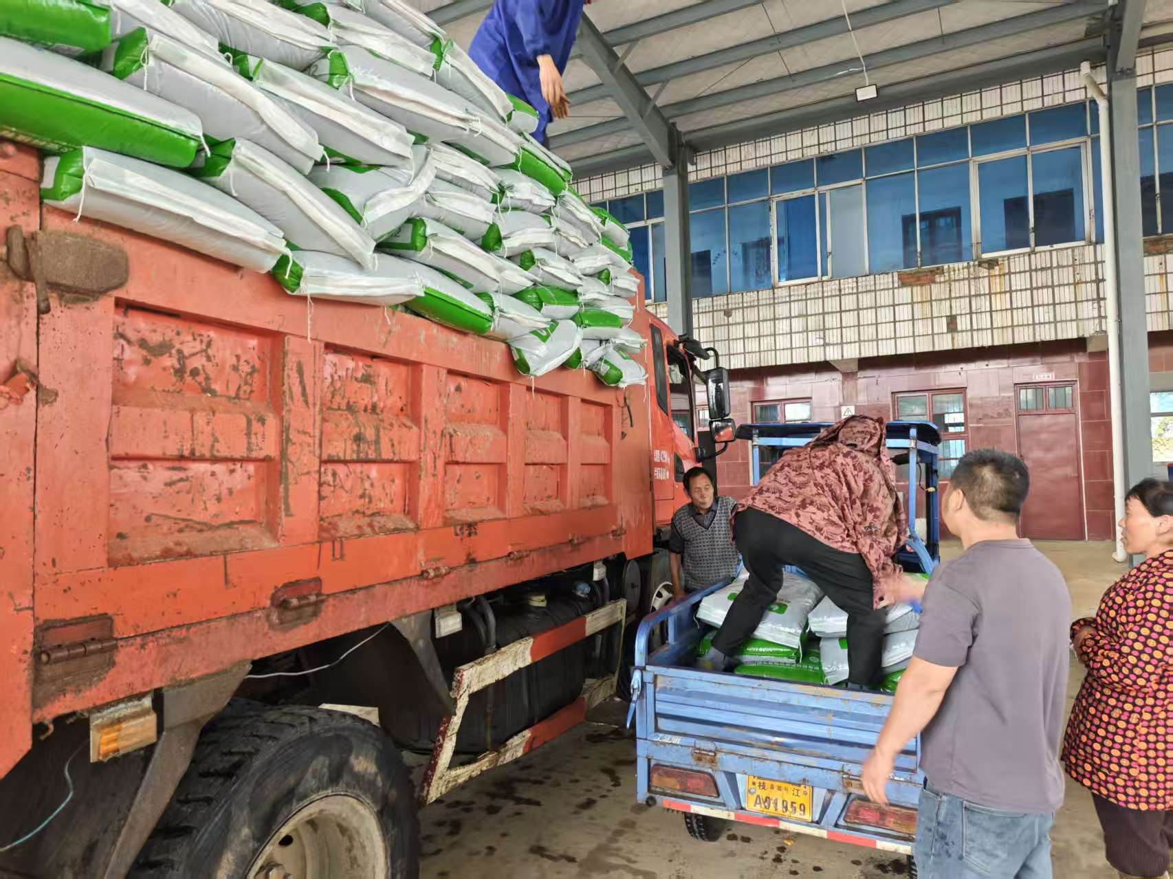 在老村委会,村干部与志愿者协同作业,一边核对农户信息,一边协调肥料装车。农户们撑着伞,排着队,脸上洋溢着喜悦。“以前田块小,施肥靠肩挑背扛,现在田成方、路相通,肥料直接送到村委会,太方便了!”一位正在接肥的农户笑着说,“村委会想得周到,趁着下雨把肥发下来,我们正好趁着墒情好,马上就能下地翻耕播种,心里踏实多了!”