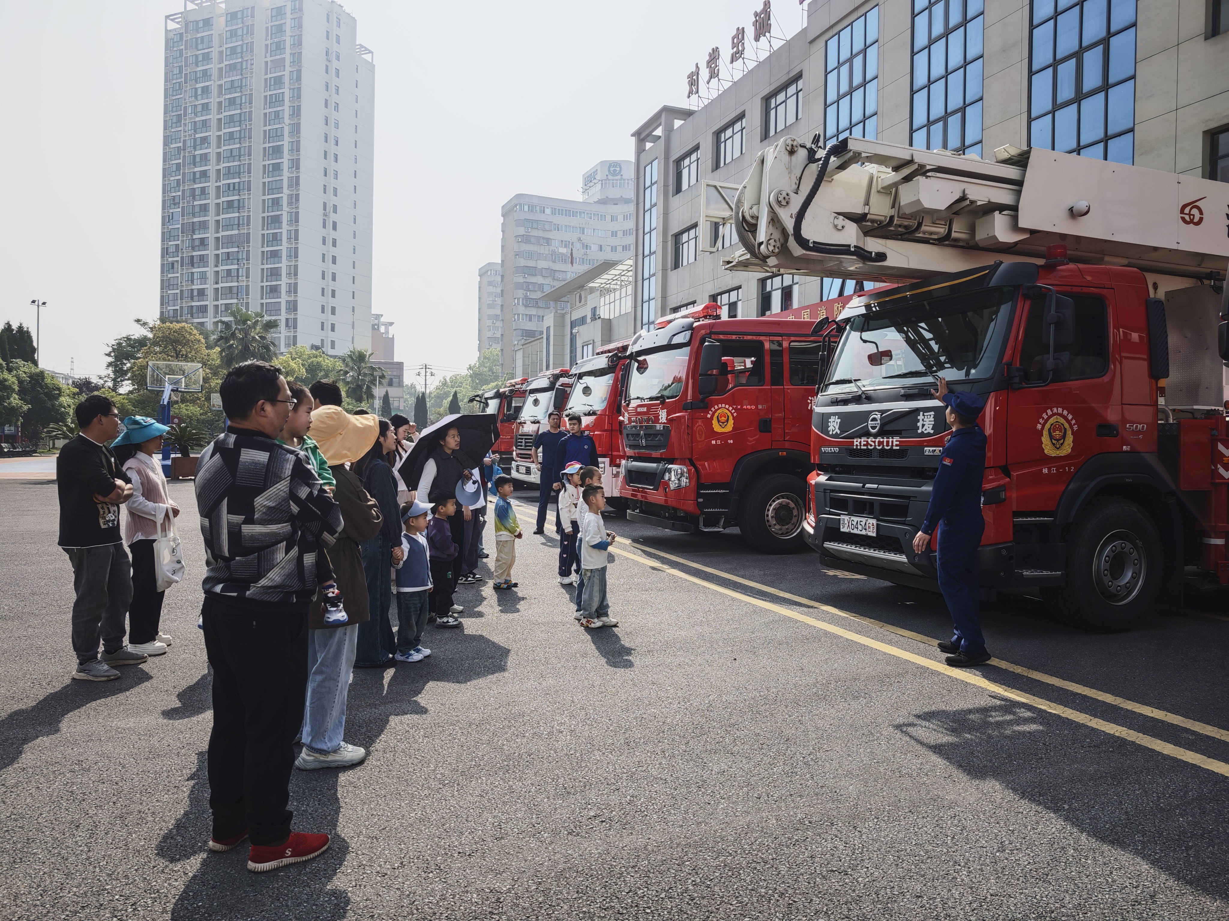 活动现场,消防人员带领大家依次参观了各类消防车辆和器材装备,详细讲解了消防车、破拆工具等装备的用途、操作方法及日常维护知识,现场演示了各类器材的正确使用步骤,邀请居民和学生亲手操作。随后,消防人员结合典型火灾案例,讲解了家庭防火、初期火灾扑救、火场逃生自救等实用知识,提醒大家注意日常用火、用电、用气安全。同时,消防人员还耐心解答了群众提出的各类消防安全疑问,一一回应大家在日常防火中遇到的困惑,让安全知识真正入脑入心。