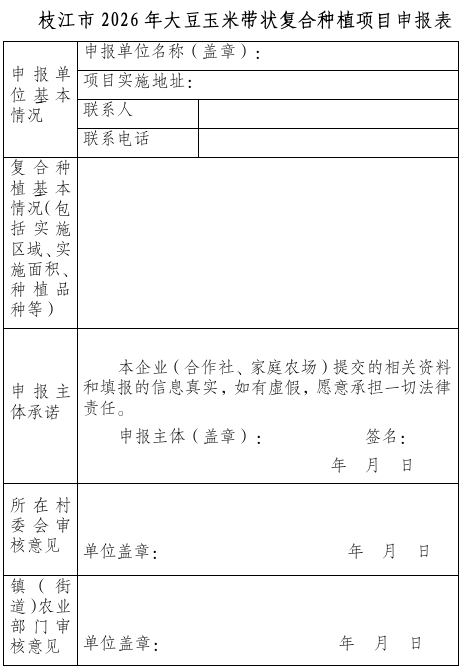 1.枝江市2026年大豆玉米带状复合种植项目申报表(见附件);
