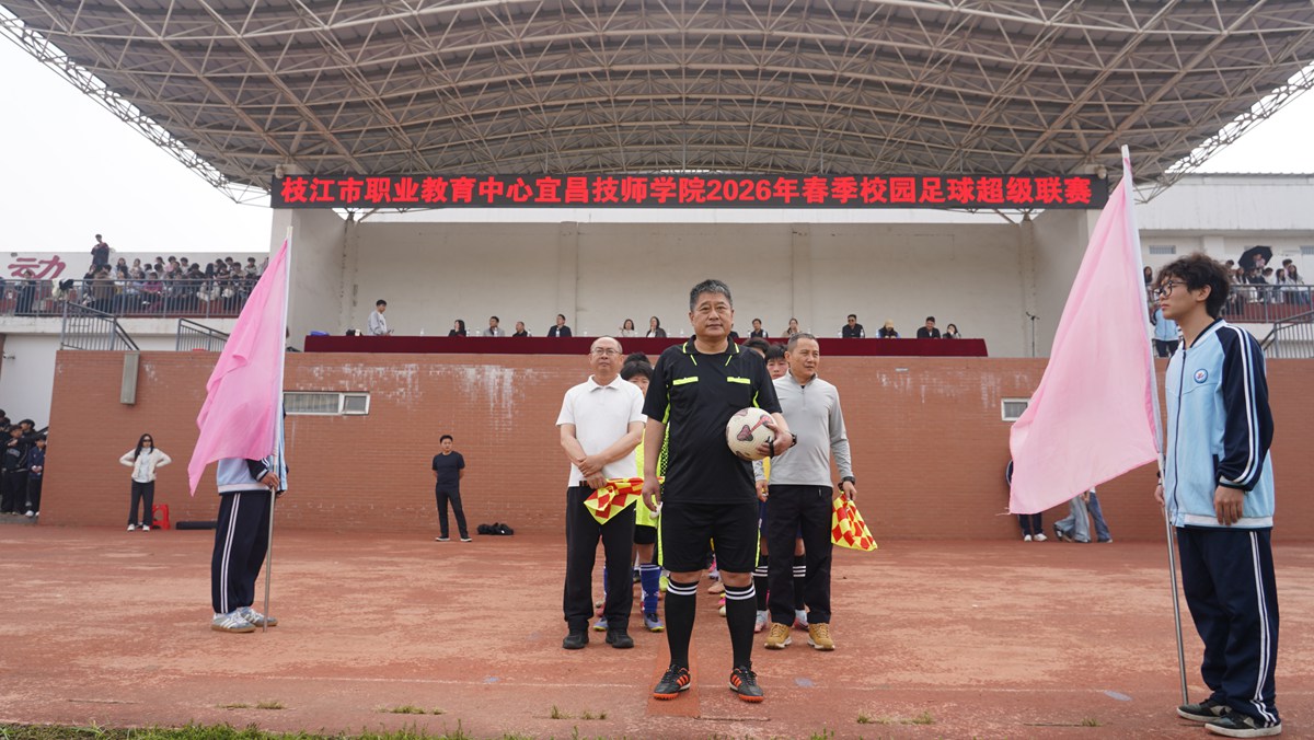 入场式结束后,校园足球联赛启动仪式正式开始。作为全国足球特色学校,本届联赛以“班班有球队、周周有比赛”为目标,覆盖全校所有年级与班级。校领导共同为联赛开球,随着足球从两人脚下滚向场地中央,全场欢呼声四起,标志着枝江职教中心2026年校园足球联赛正式鸣哨。