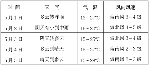 “五一”假期我市前雨后晴 请合理安排出行